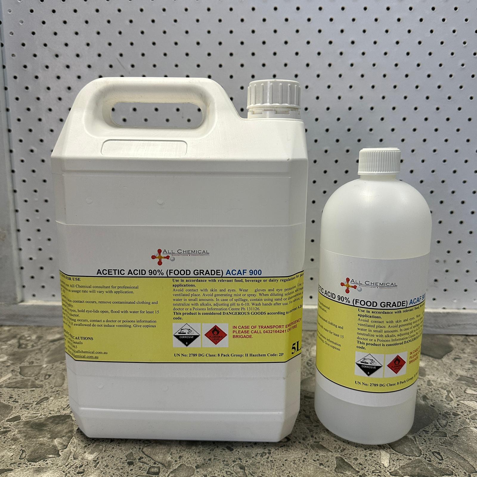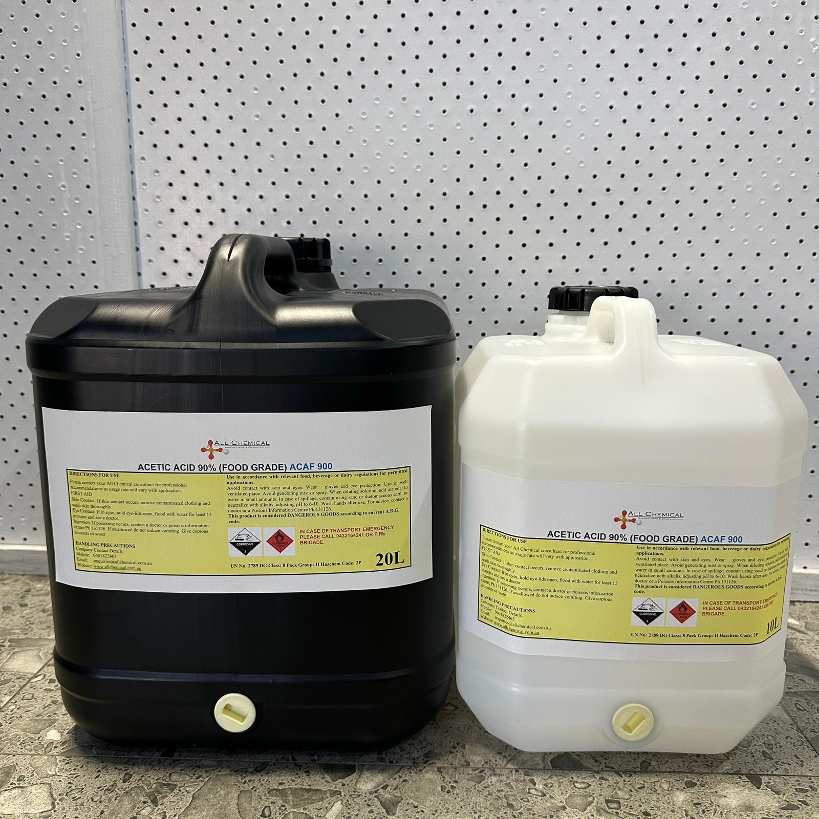 Acetic acid 90% food grade is a high-purity, concentrated form of acetic acid used in food processing, but only in carefully diluted applications. It is used in food processing, pickling, cheese production, beverage manufacturing, cleaning in food plants and food equipment and many more.