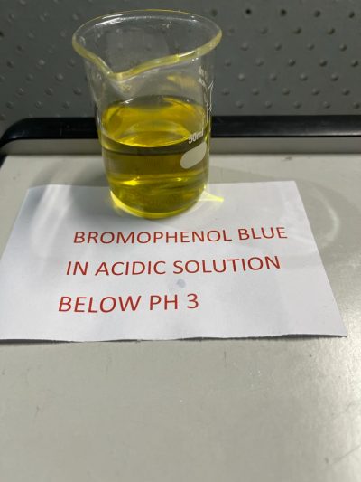 Bromophenol Blue 0.1% (w/v) in denatured Ethanol is a high quality Indicator Solution used in manual titrations. As an acid phthalein dye, or commonly known as a pH indicator, this product facilitates end point detection, in a clear and unambiguous manner and is an imperative for accurate manual titrimetry.