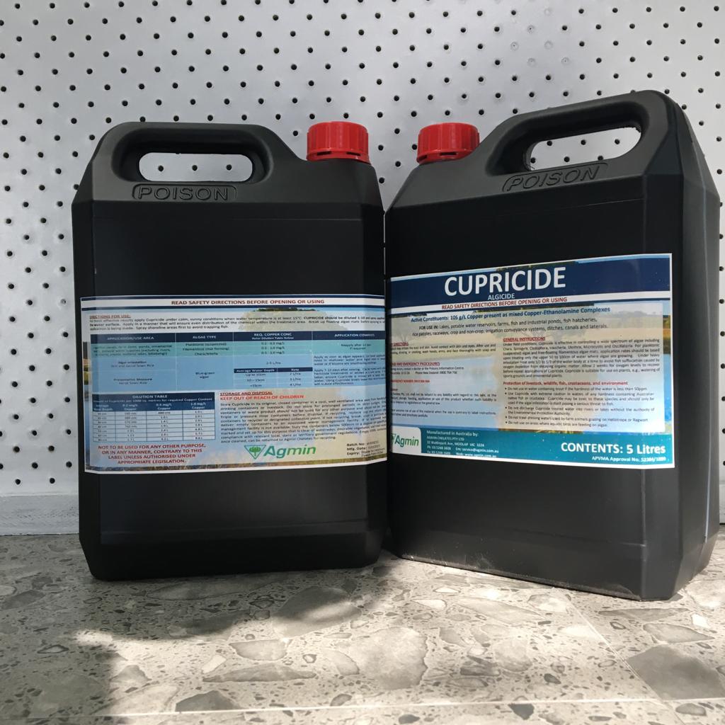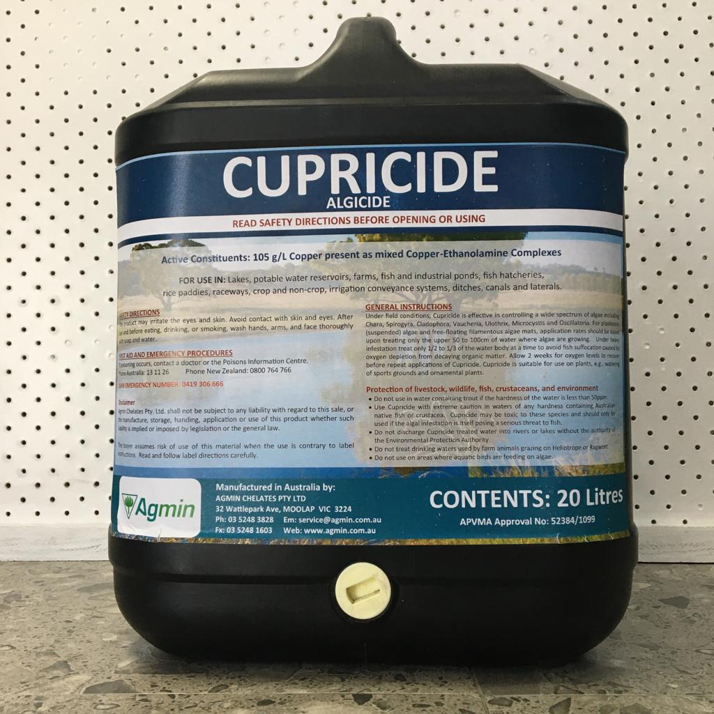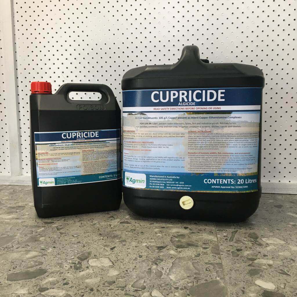The benefit of Cupricide is that it is chelated copper which has benefits of being registered and safe for use with fish, swimming ponds, irrigation and animal water trough supply as long as dose rates are followed. Care should be taken when using any algaecide product, particularly if there are fish in the system.