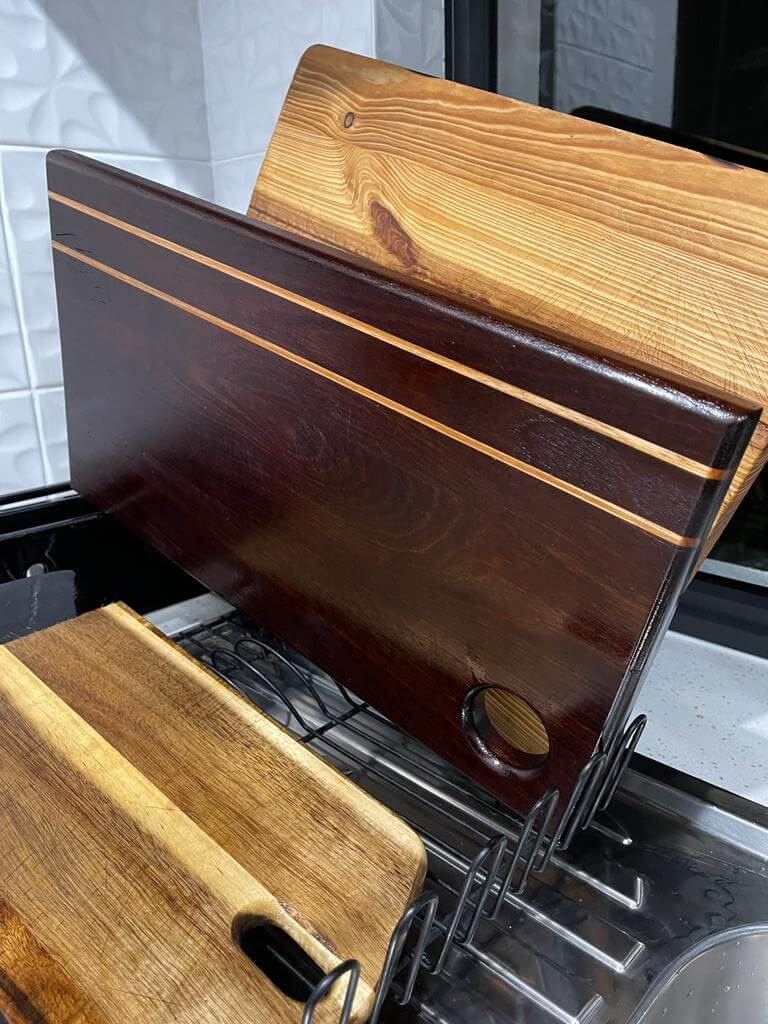 Food grade mineral oil is a popular preservative for wooden cutting boards, salad bowls, and utensils. Rubbing a small amount of mineral oil into a wooden kitchen item periodically, will impede absorption of food liquids, and thereby food odours, and ease cleaning. Please refer to the image of the cutting boards treated with food grade mineral oil.