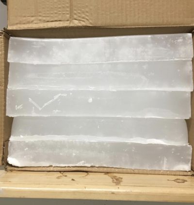 Paraffin wax is a soft colourless solid, derived from petroleum, coal or shale oil, that consists of a mixture of hydrocarbon molecules containing between twenty and forty carbon atoms. Common applications for paraffin wax include lubrication, electrical insulation, and to make candles or crayons. It is solid at room temperature and begins to melt between about 46 and 68 °C (115 and 154 °F).