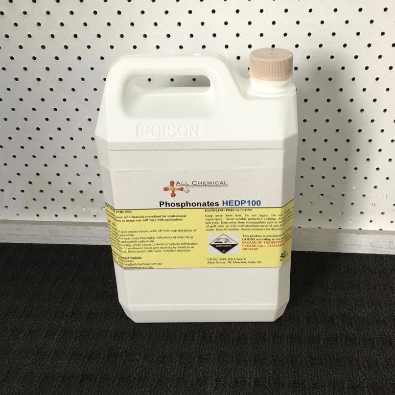 Phosphonates H.E.D.P, is an organophosphoric acid corrosion inhibitor that is used in detergents, water treatment, cosmetics, pharmaceutical treatment and as an excellent Bore stain STOPPER.