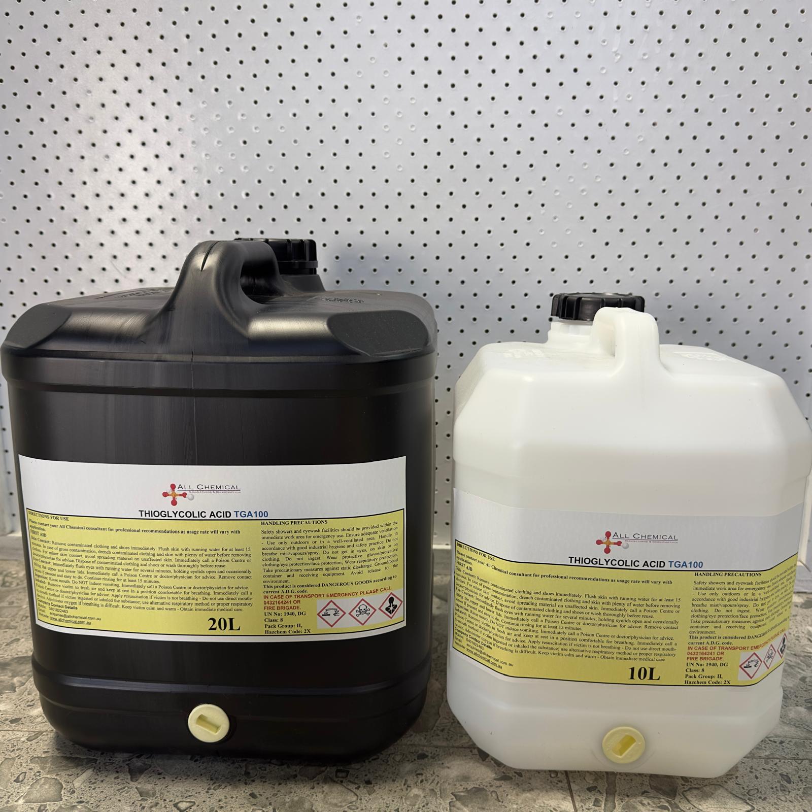 Thioglycolic Acid (TGA) is a colourless liquid with a strong, typical mercaptan disagreeable odour (although olfactory fatigue may occur) which is widely used in cosmetic formulations including hair coloring products, permanent wave solutions, hair straightening products and depilatory creams. TGA is also used to chemically break down hair fibers so that unwanted hair can be removed by simply wiping it from the skin.